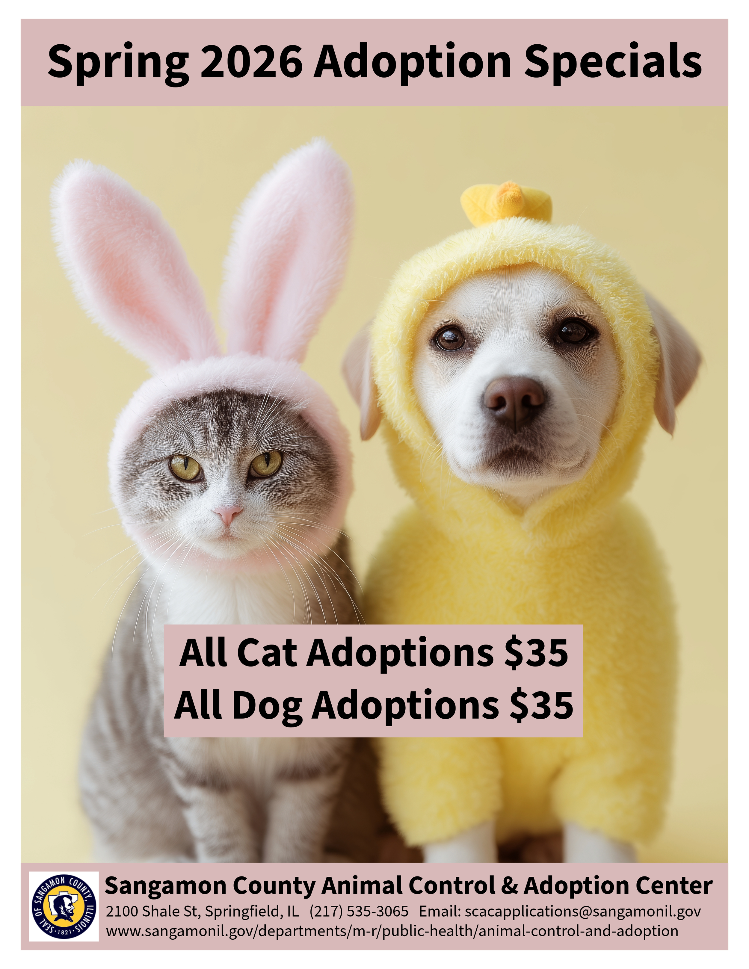 Sangamon County Animal Control & Adoption Center is currently discounting all cat & dog adoption fees to just $35! Come in soon to meet your new fur baby(ies)!