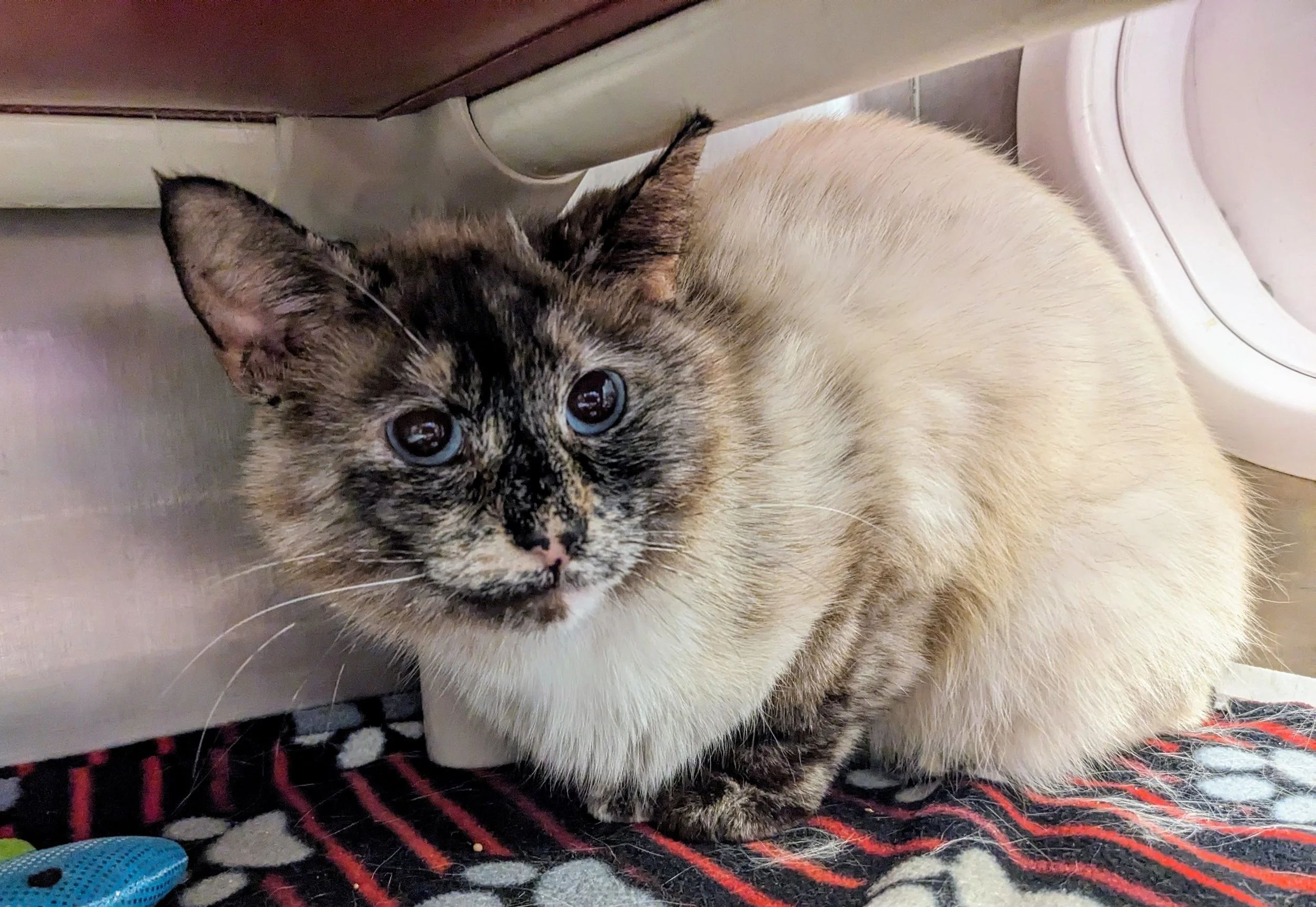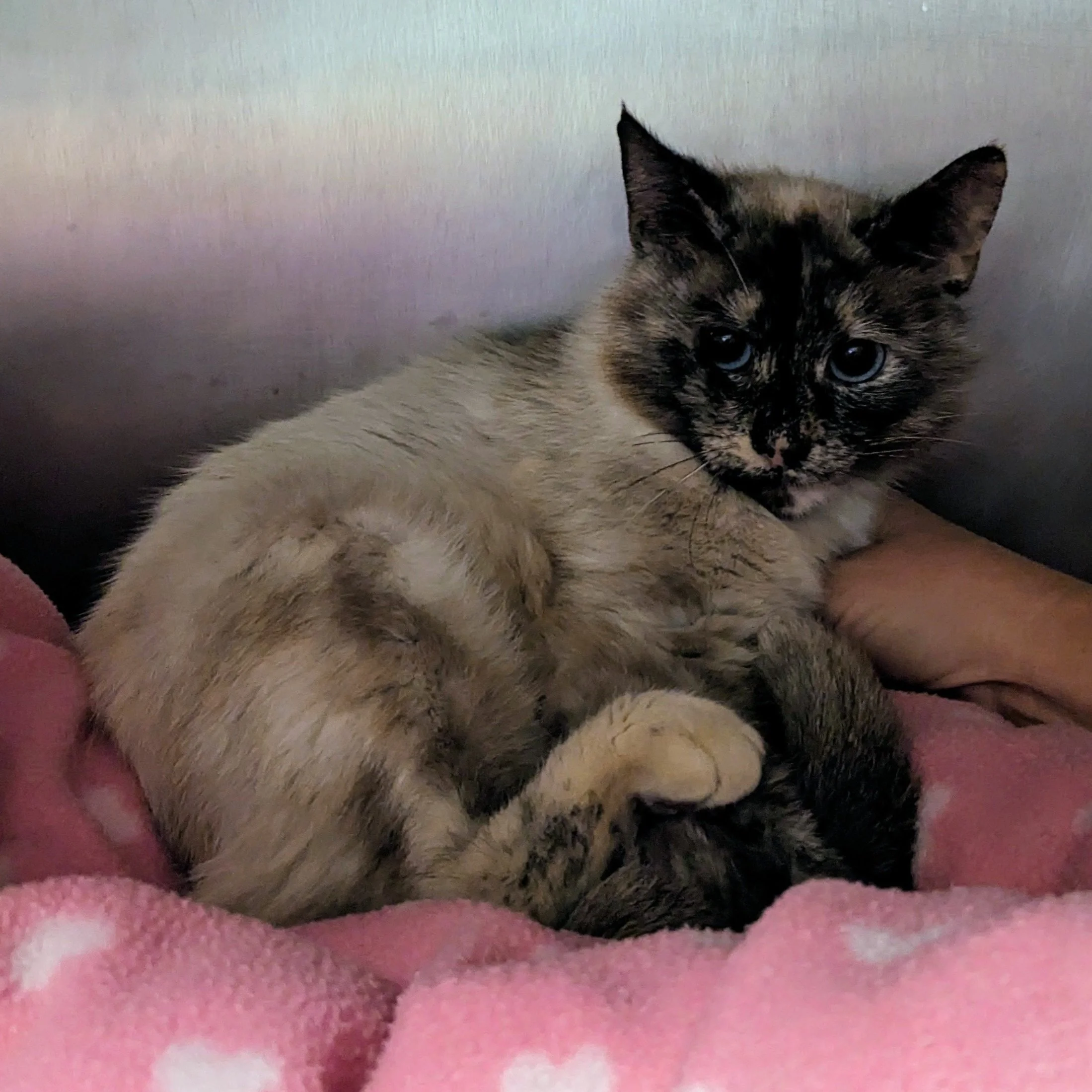 Willow is not your average Siamese mix - she is a tortie point Siamese. A tortie point Siamese has flecked or mottled points instead of solid ones, resembling the shell of a tortoise. There are seven different varieties of tortie point Siamese cat, according to UK's Cat Fancy. Willow is a caramel tortie point. She is about two years old and arrived at SCAC on May 23 via owner surrender through no fault of Willow's. This beauty is taking some time to adjust to the shelter environment, which unfortunately can be quite scary. She may require some extra patience and TLC as she settles into her true forever home. Willow previously lived in a home with another cat, so we would expect her to be okay with a feline sibling, as long as introductions are handled appropriately. She will go home with you spayed, microchipped, and vaccinated appropriate to age. Willow is negative for Feline Immunodeficiency Virus (FIV) and Feline Leukemia Virus (FeLV). She is waiting for you at Sangamon County Animal Control in Springfield, IL.